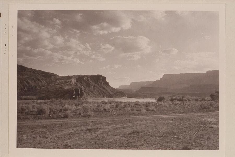 No. 128, Charles Gibbons album. Scenes at Lees Ferry. Downriver scene from Lees Ferry