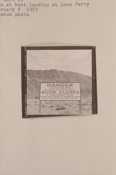 Lees Ferry from boat. The stern wheel boat "Navajo" is at the shore just left of center