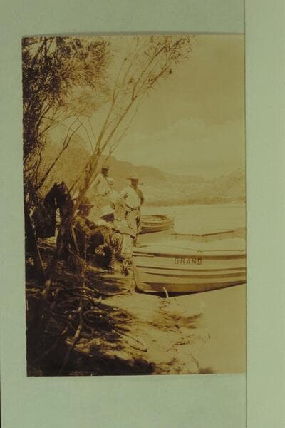 Boats and crew of the USGS party at Lees Ferry where they waited for the flow of the river to drop