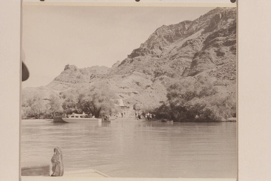 Watching departure of 1947 Nevills party from Lees Ferry. Marston photo from the "Joan" in midstream. Lees Ferry gauge: 35,800 cfs