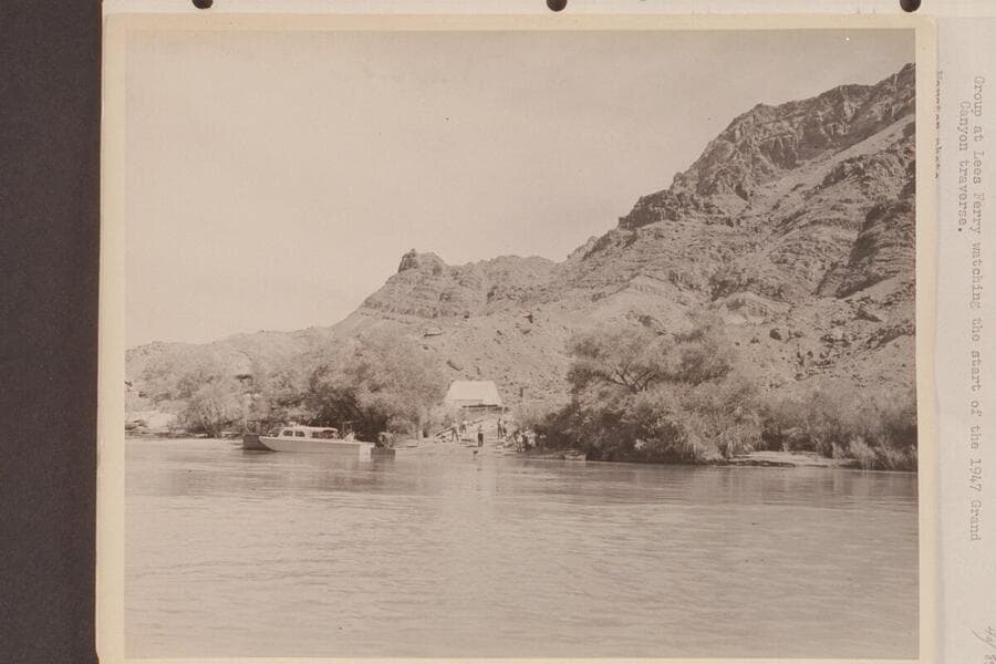 Group at Lees Ferry watching the start of the 1947 Grand Canyon traverse
