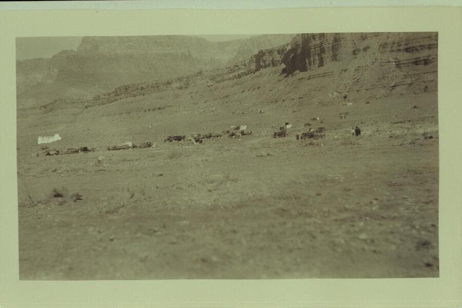 Camping at the Marble Canyon bridge dedication. Print from Freeman collection