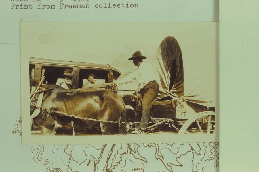 Setting up the picture of The Old and The New. Dedication of the Marble Canyon Bridge. Print from Freeman collection