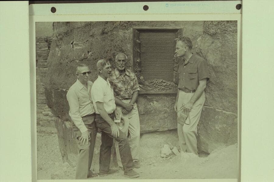 Dedication of the Nevills Memorial Plaque at Navajo Bridge. Streater; Ben Avery; Masland; Goldwater in picture