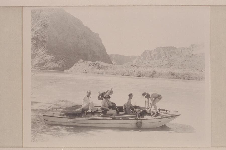 ![The "Esmeralda" [II] and crew starting the run from Lees Ferry which proved to be the first motor run of the Grand Canyon. Owen Clark at left with back to camera. Bestor Robinson; Edward Hudson; Willie Taylor; Ed Hudson; Dock Marston](/_next/image?url=https%3A%2F%2Frail.huntington.org%2FIIIF3%2FImage%2F22APN4ZSXQZY%2Ffull%2F%5E360%2C%2F0%2Fdefault.jpg&w=750&q=75)