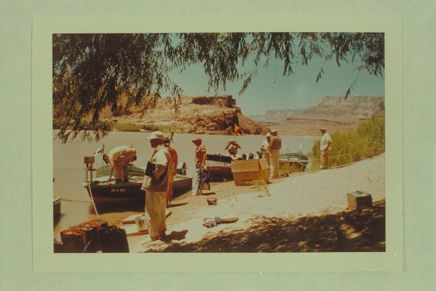 Rigging for departure at Lees Ferry. Dock Marston at left