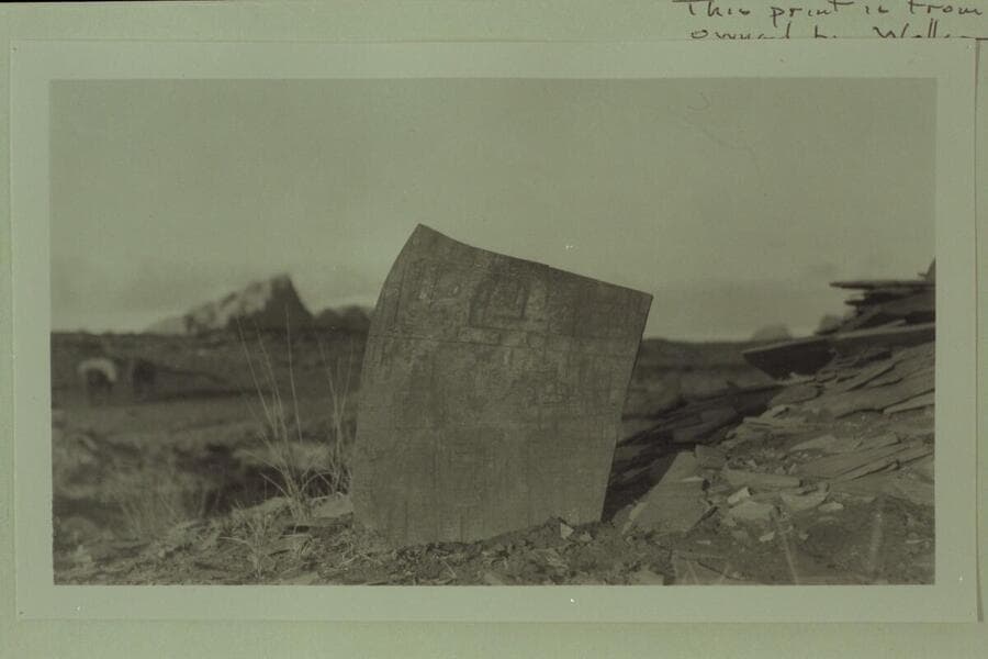 "Julie Julian" inscription on rock slab found at the Fort at Hite by Mrs. Bob Dechert in 1967
