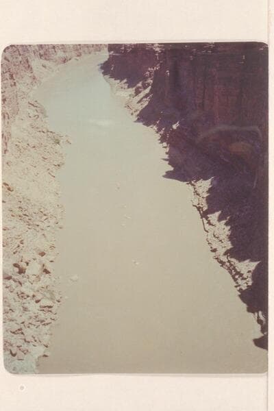 The "MHE" fleet of sadirons floating under the highway bridge; Marble Canyon
