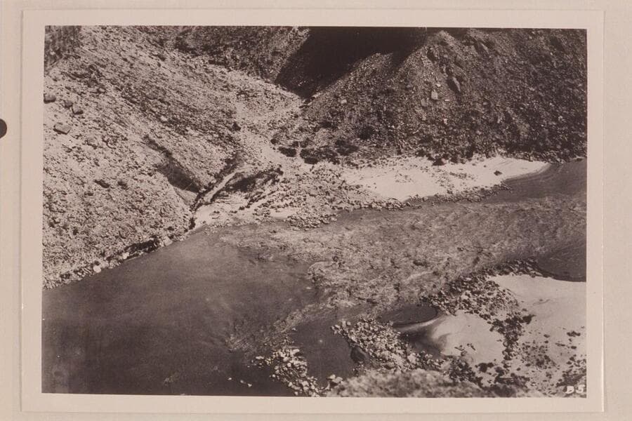Looking down on Badger Creek Rapid from rim of Marble Canyon 600 feet above