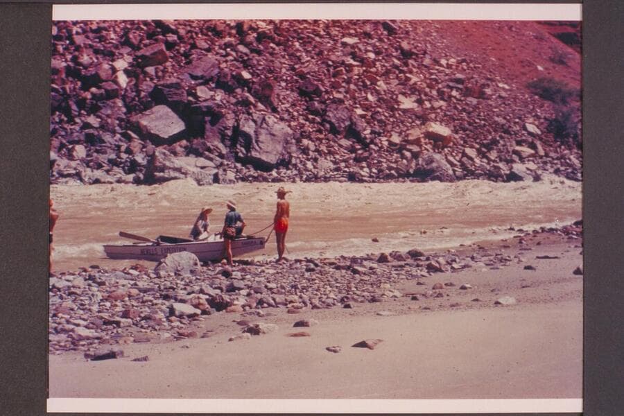 Dock Marston putting the "Joan" thru Hance Rapid. Bright Angel gauge: 27,200 cfs