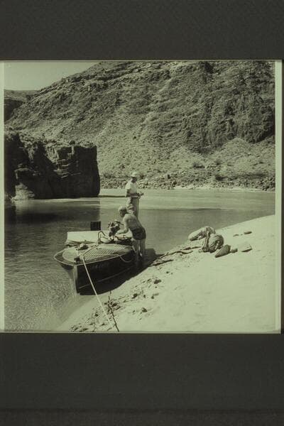 The motor boat moored in the lagoon at Tapeats Creek; Guy Forcier and Marston