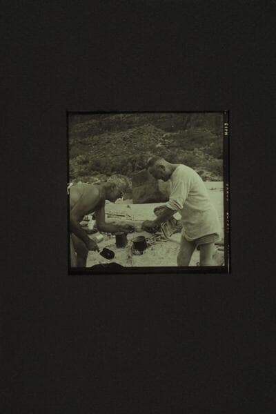 Eisaman and Masland bathe dishes at Diamond Creek, Grand Canyon