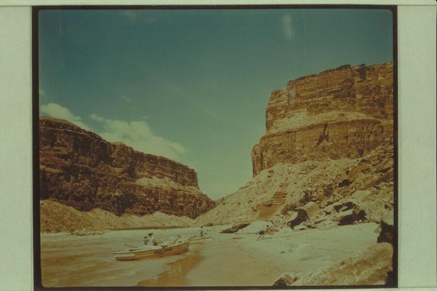 Nevills boats pulled in at left bank below Badger Creek Rapid