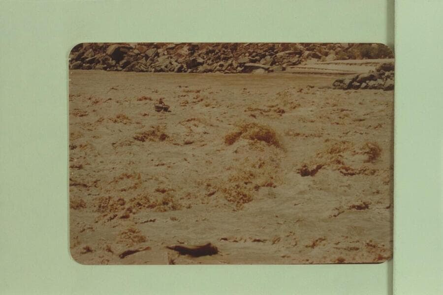 Nevills running the Reclamation boat through Badger Creek Rapid using oars, Mile 8