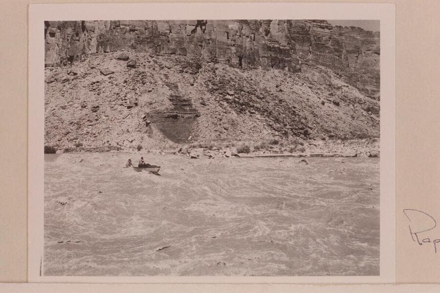 Rod Sanderson and Danny Daniels in the "Twin." Paria Riffle. Just prior to the start down the Marble and Grand Canyons