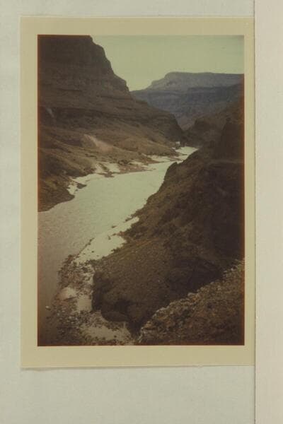 Downstream from foot of beach below Tapeats Creek. The Narrows are in the middle distance