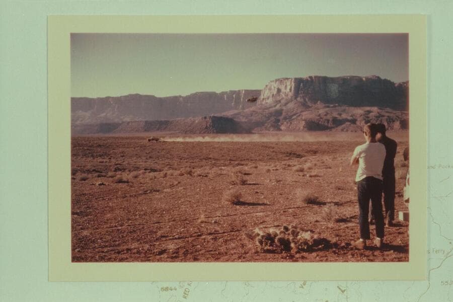 The Wilding-Ford operation at the overlook above Soap Creek. Bill Lindsley explains to Guy how he wants the camera to work from the chopper