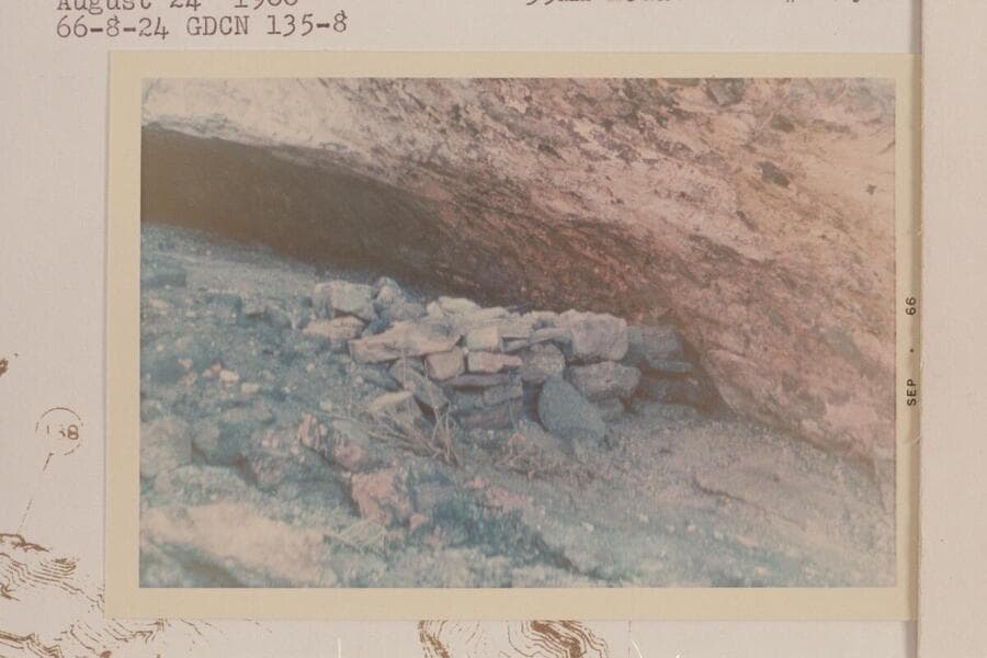Ruin with Bob Euler's tag. Lowest ramp; Granite Narrows