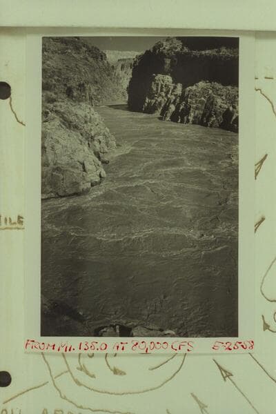 Reilly-Fulmer crew studying the surge at Mile 135.2; approximate gauge: 80,000 cfs