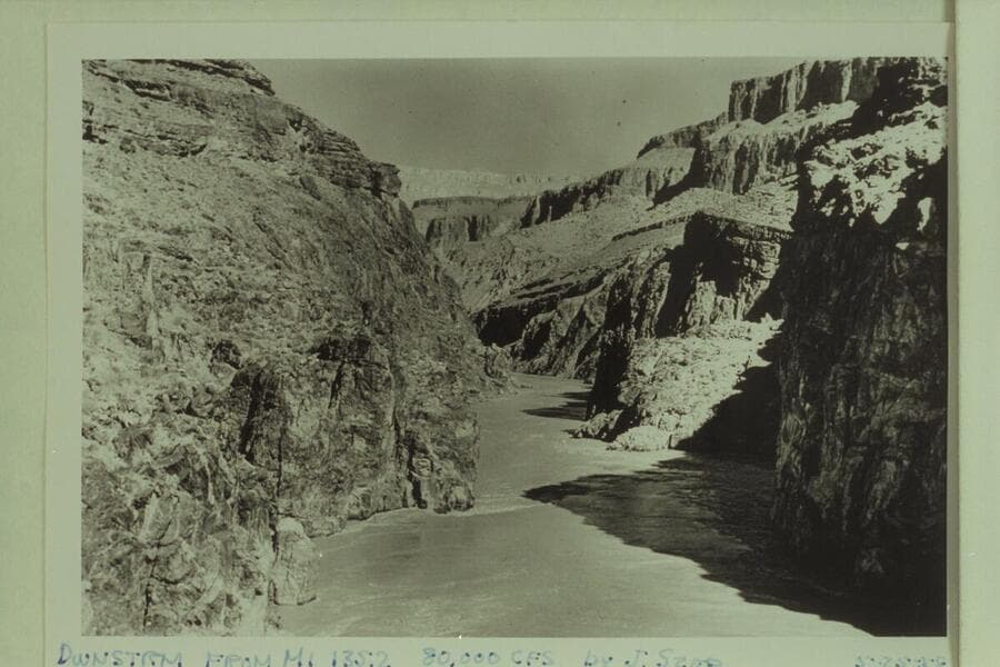 Reilly-Fulmer crew studying the surge at Mile 135.2; approximate gauge: 80,000 cfs