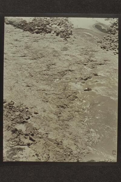 Wright-Rigg motorboat in Badger Creek Rapid. Jim Rigg is at controls. F. E. Masland is passenger