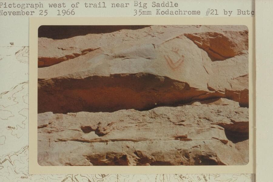 Knoll and Saddle (arrows) at Spur Trail as seen from west rim of lower Grapevine Vanyon