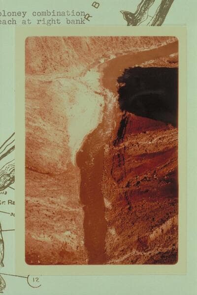 Georgie White's tribe on her boloneys plopping through Soap Creek Rapid. Ballard Atherton photographs the act from the left