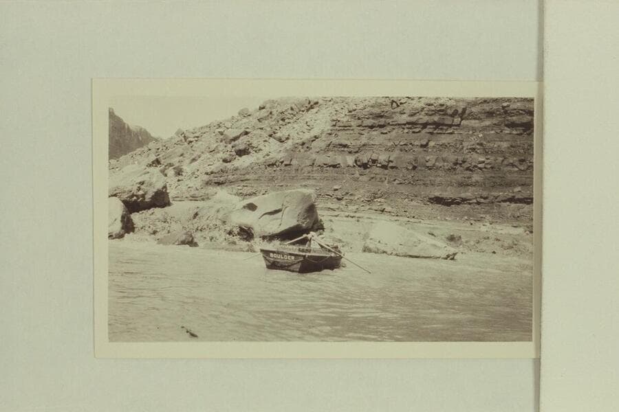 Leigh Lint pulling out of the mouth of Soap Creek after the "Boulder" had been portaged. From the Freeman collection. Lees Ferry gauge: 22,700 cfs
