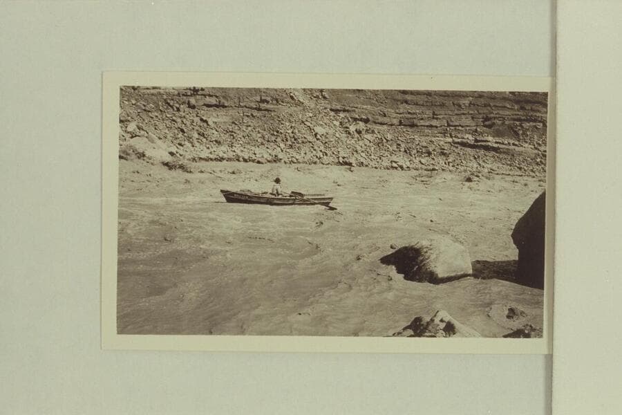 Leigh Lint pulling out of the mouth of Soap Creek after the "Boulder" had been portaged. From the Freeman collection. Lees Ferry gauge: 22,700 cfs