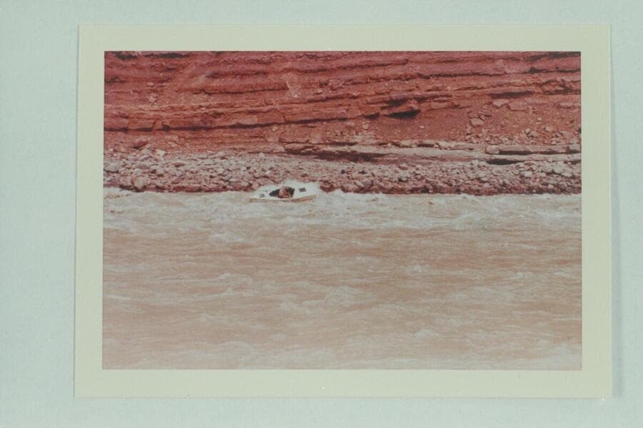 Dock Marston putting the "Joan" through some of the big water in Soap Creek Rapid