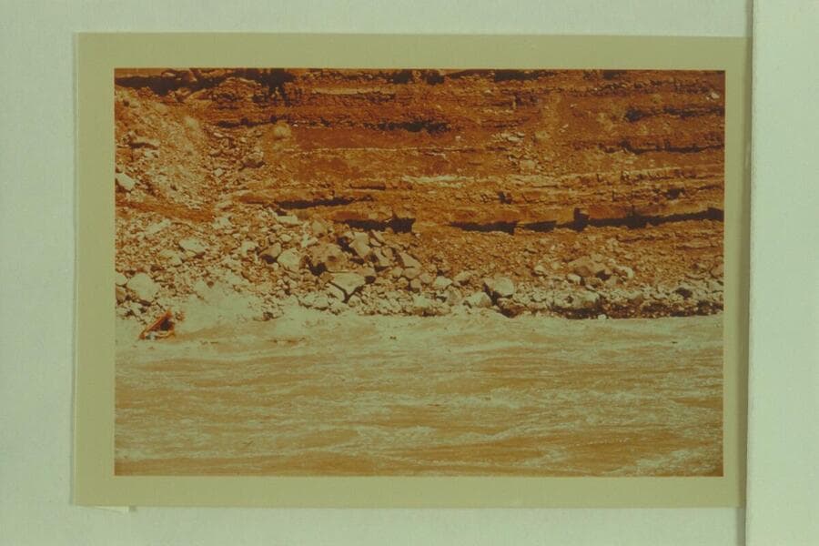 Jack Brennan handling his glass outboard boat with the oars. Mile 47. Triple Alcoves