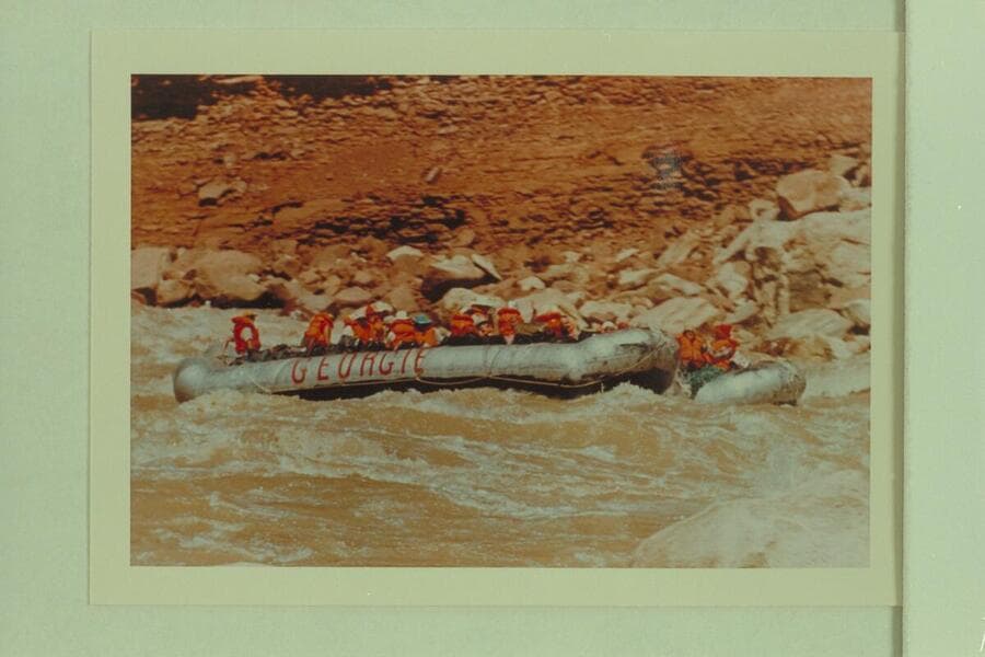 Georgie White's party on her boloneys in Soap Creek Rapid