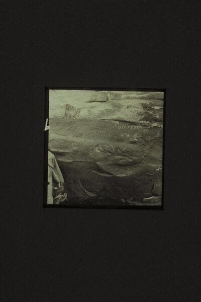 Brown Inscription at Mile 12 in Marble Canyon left bank. Cut by Peter M. Hansbrough. Retouching by Martin Litton