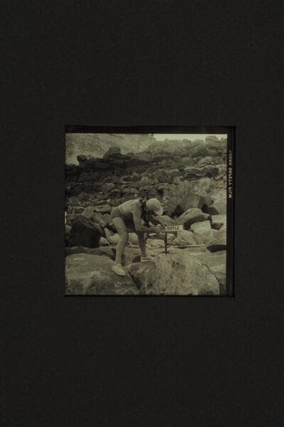 Marston pounding in the sign at Brown's Riffle. Mile 12, Marble Canyon