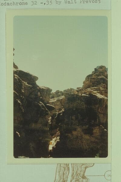 The narrow openiing of Tanner Wash at the head of Sheer Wall Rapid. Mile 14 1/2