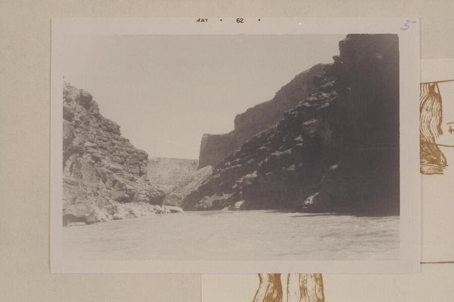 ![Up to Boulder Narrows. Approximate gauge: 60-65,000 cfs. [photo reverse: Marble Canyon; Boulder Narrow (rapids) from below, upstream view. About Mile 18.8]](/_next/image?url=https%3A%2F%2Frail.huntington.org%2FIIIF3%2FImage%2F22APN4INMRQL%2Ffull%2F%5E360%2C%2F0%2Fdefault.jpg&w=750&q=75)