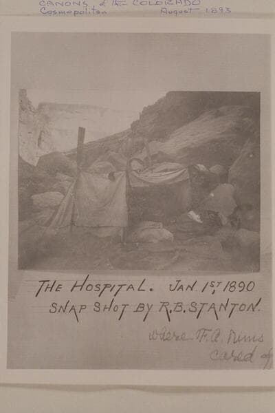 Where Nims was cared for after falling from cliff. Nims had cracked his skull and injured one leg. Photo possibly by Stanton or Hogue. Mile 13 in Marble Canyon