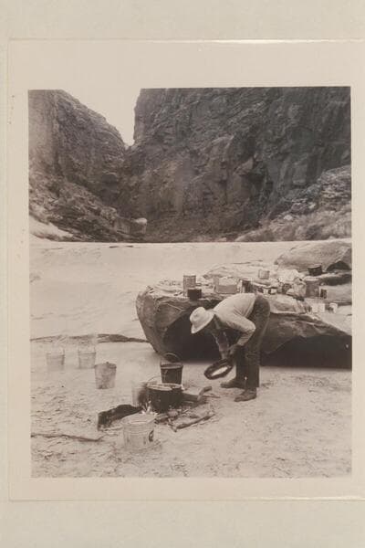 J. Frank Wright, boatman and cook with Nevills 1948 party. Marble Canyon. Mouth of House Rock Canyon