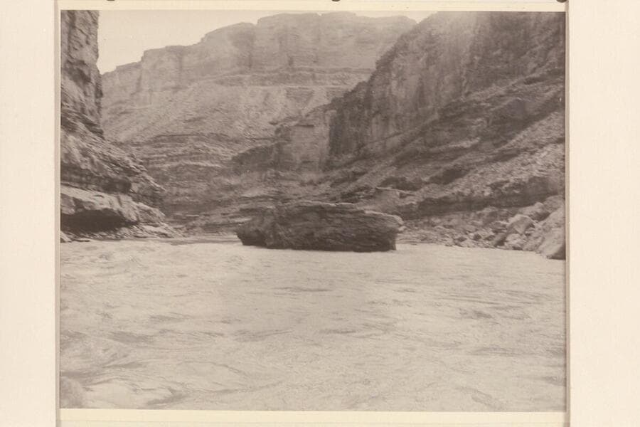 Boats on both sides of the boulder in Boulder Narrows, Mile 18 1/2, from below. National Archives