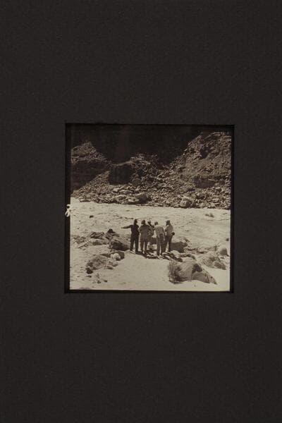 The crew looking over the 24.5 Mile Rapid in Marble Canyon. Left to right: Belknap, Eisaman, Taylor, Marston, Masland, Desloge and Sanderson