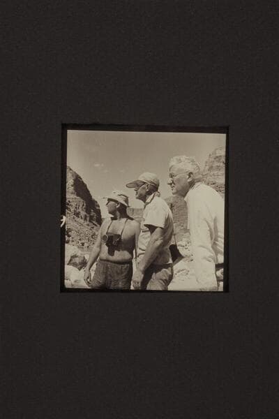 The crew looking over the 24.5 Mile Rapid in Marble Canyon. Left to right: Belknap, Eisaman, Taylor, Marston, Masland, Desloge and Sanderson