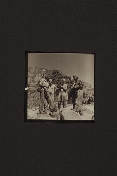 The crew looking over the 24.5 Mile Rapid in Marble Canyon. Left to right: Belknap, Eisaman, Taylor, Marston, Masland, Desloge and Sanderson
