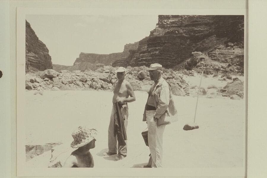 Garth Marston, Josh Eisaman and Dock Marston on beach below Mile 24.5