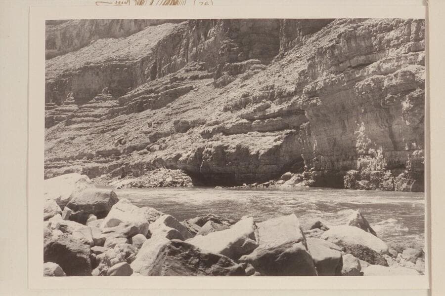 Down river from foot of 24.5 Mile Rapid to 25 Mile Rapid and the fan at Mile 25.2