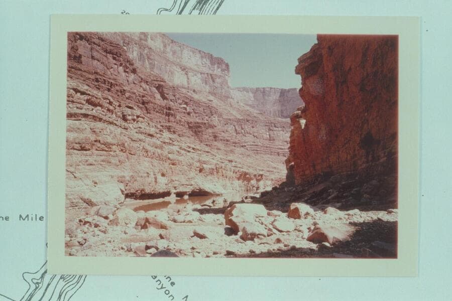 Plunge pool at mouth of Tiger Wash. Head of boulder fan at 27 Mile Rapid. Mile 26.7