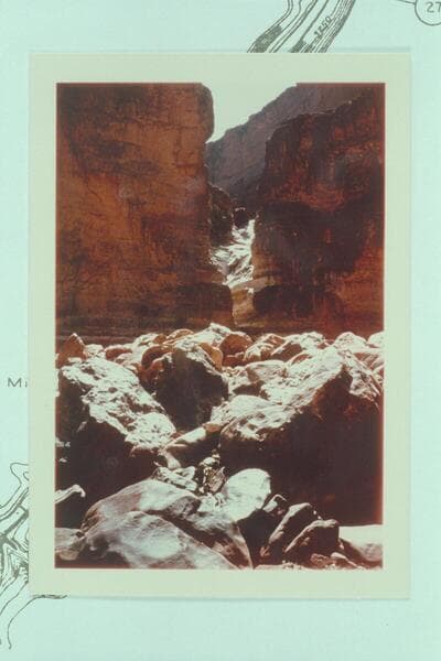Plunge pool at mouth of Tiger Wash. Head of boulder fan at 27 Mile Rapid. Mile 26.7