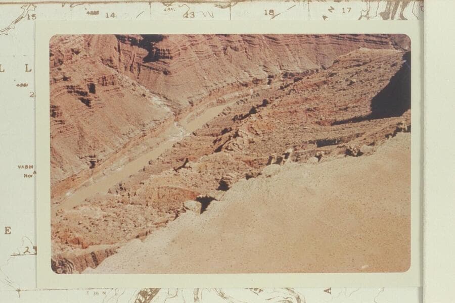 The Mortenson-Reilly-Litton boats landed at Mile 28.3. The rocks are part of the fan appearing in the Hillers photo 445