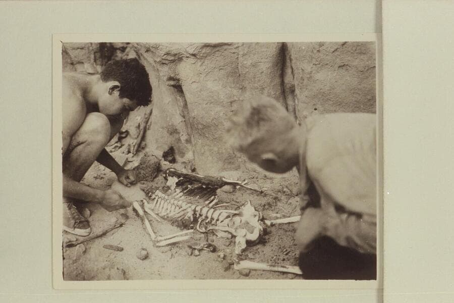Bruce Wilson and Garth Marston swimming at the foot of the Tanner Trail