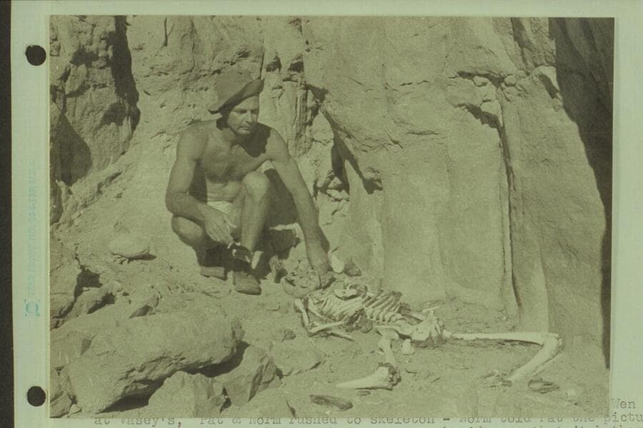 Marston and the skeleton. The photo which Nevills attempted to imitate in 1949 with Reilly as photographer