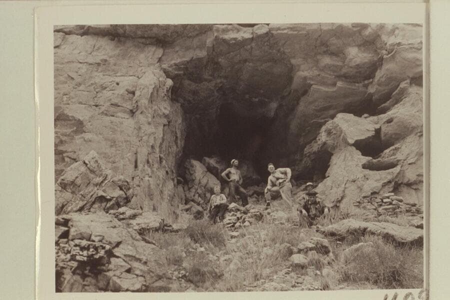 At the mouth of Stanton Cave. Bruce Wilson; Nevills; Hudson; Marston back of Olsen